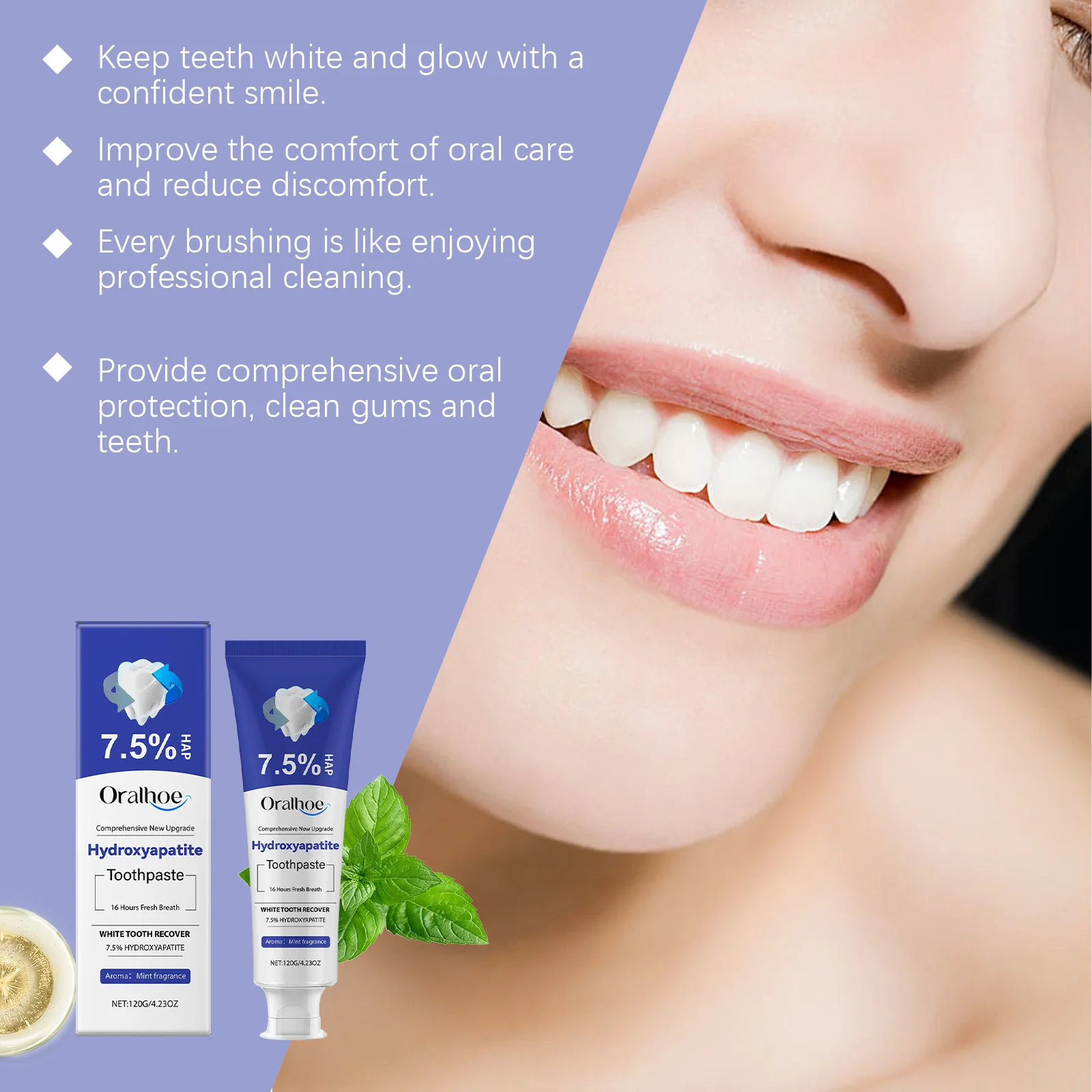 Oralhoe Hydroxyapatite Toothpaste Gentle Remove Yellow Stains Promote Gum Health Eliminate Bad Breath Whitening Toothpaste